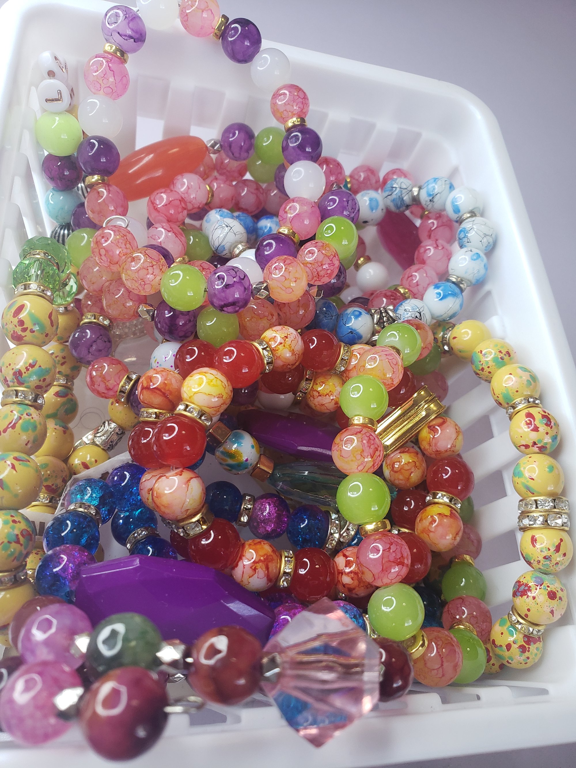 It can be a beaded bracelet, bangle, beaded pen, our love bracelet , cute little keychain etc. you just don't know but whatever it is if your shopping with us you know the items are going to be cute and packaged with love.
